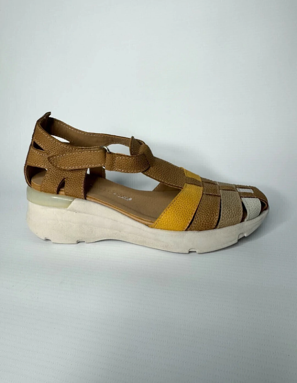 Zapato tipo franciscana y base de zapatilla combinado con metales