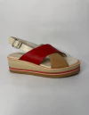 Sandalia de vestir con talón y pulsera combinada en cuero transfer y villoné con plataforma.