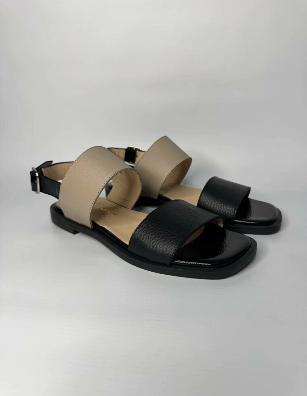 Descubrí la Sandalia combinada floter negro y off white, confeccionada en cuero de alta calidad. Su plantilla de charol negro aporta un brillo sutil y elegante, mientras que la suela de goma con taco de 1 cm garantiza confort y estabilidad en cada paso.