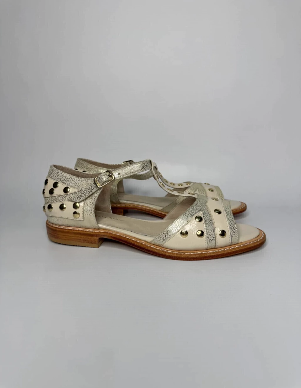 Sandalia R 3245: sofisticación y diseño exclusivo Descubrí la sandalia R 3245, elaborada en cuero genuino con un delicado forro del mismo material que asegura comodidad en cada paso. Su diseño combina tachas y una pulsera que aportan un toque moderno y elegante. El taco bajo de 2 cm brinda estabilidad y confort, ideal para quienes buscan estilo sin sacrificar practicidad. Perfecta para elevar cualquier look con distinción y buen gusto.